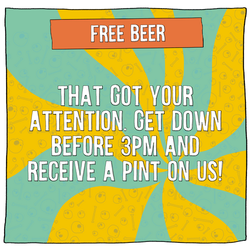 Examples include... a free pint on us if you arrive before 3pm!